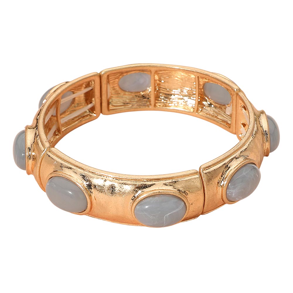 • This textured stretch bracelet is adorned with oval cabochon-style accents, giving it a bold and artistic appeal. Designed for comfort and easy wear, it’s a versatile piece that adds a touch of statement style to both casual and dressy outfits.