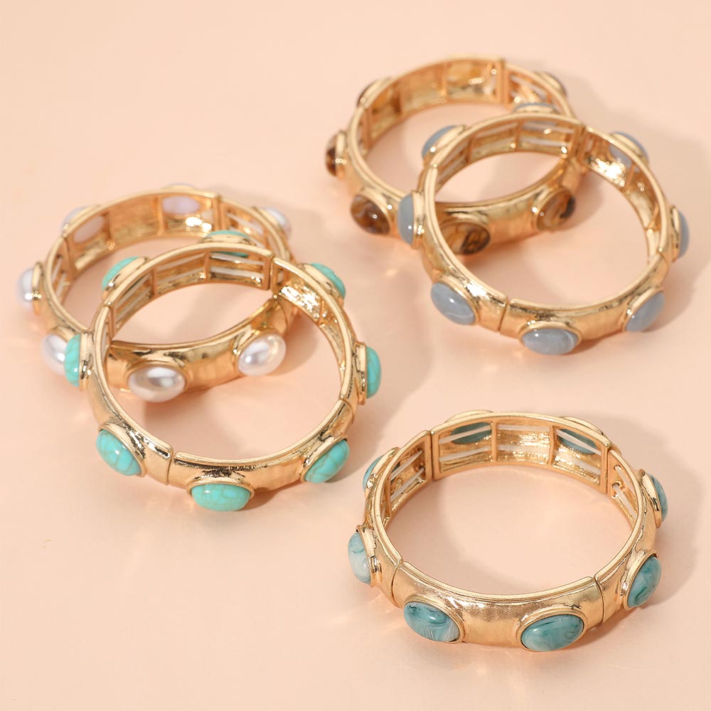 Marbled Oval Stone Accent Hammered Metal Beaded Stretch Bracelet Marbled Oval Stone Accent Hammered Metal Beaded Stretch Bracelet Marbled Oval Stone Accent Hammered Metal Beaded Stretch Bracelet