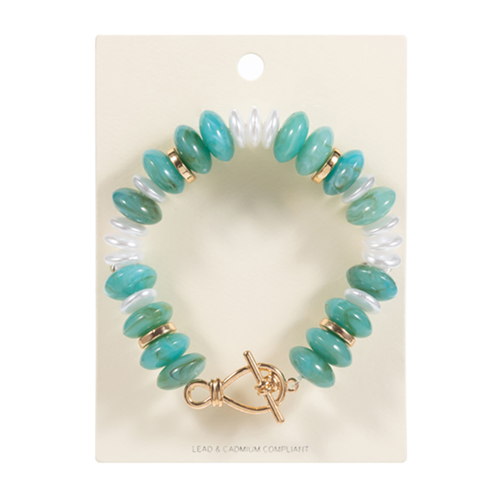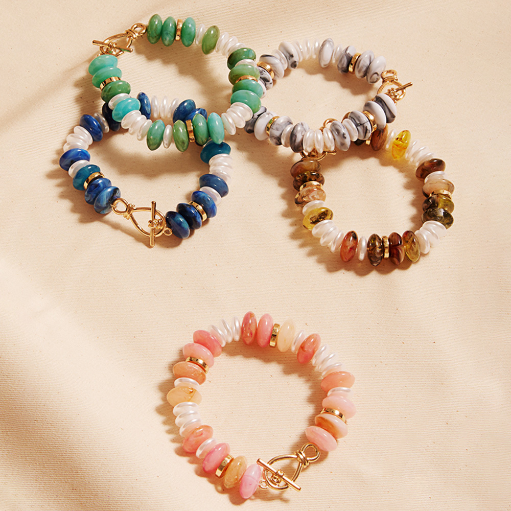 Marbled Round Shaped Beads Pearl Beaded Stretch Bracelet