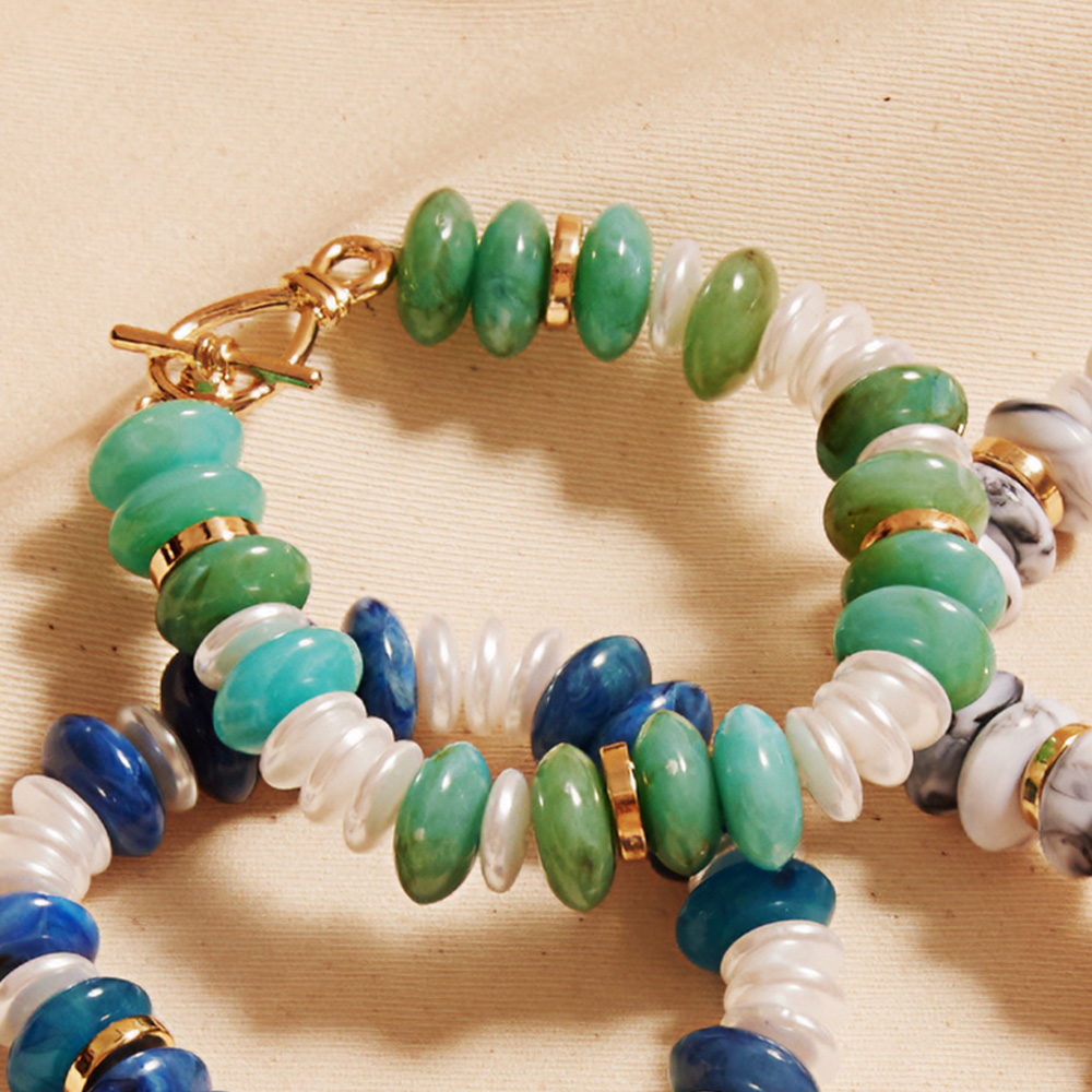 Multi Color Resin Pebble Beaded Layered Statement Necklace