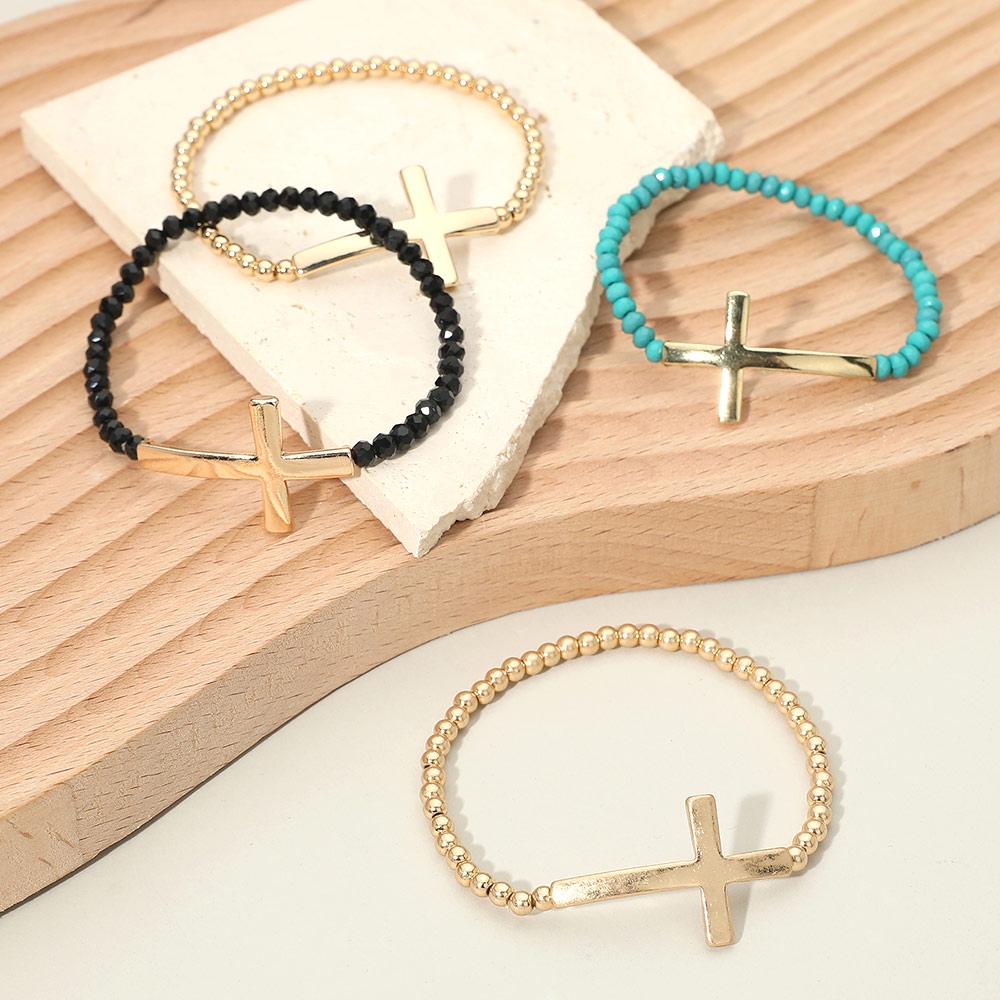 Metal Cross Accent Beaded Stretch Bracelet Metal Cross Accent Beaded Stretch Bracelet Metal Cross Accent Beaded Stretch Bracelet
