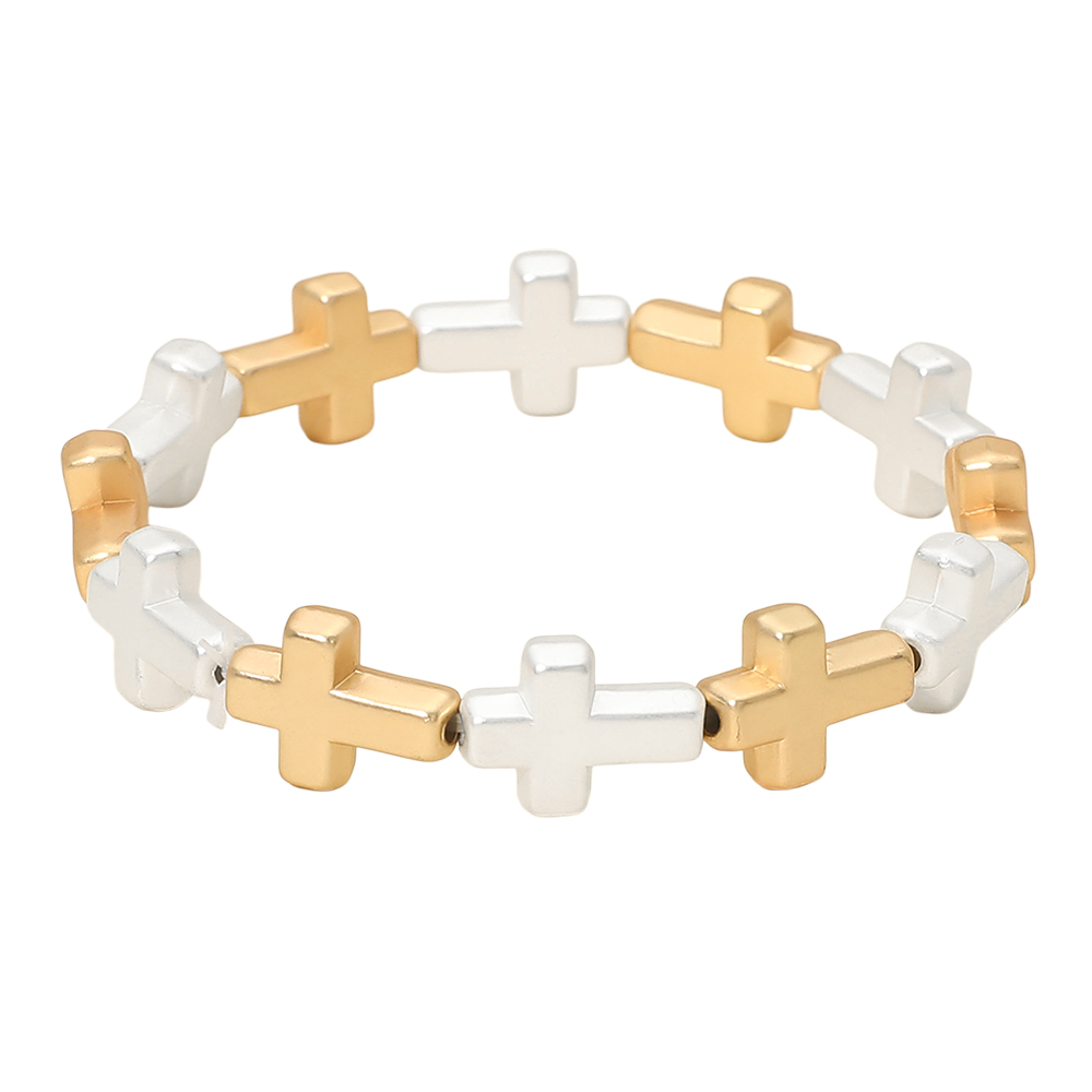 Metal Cross Beaded Stretch Bracelet Metal Cross Beaded Stretch Bracelet Metal Cross Beaded Stretch Bracelet