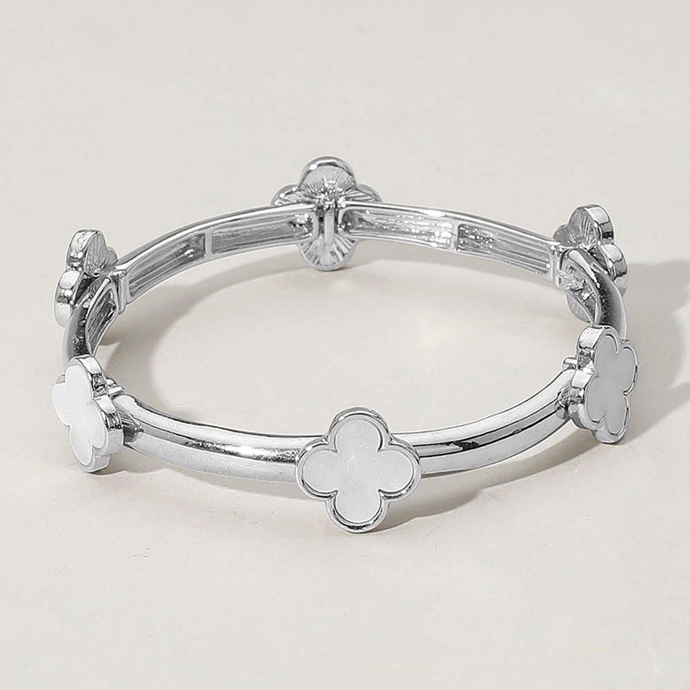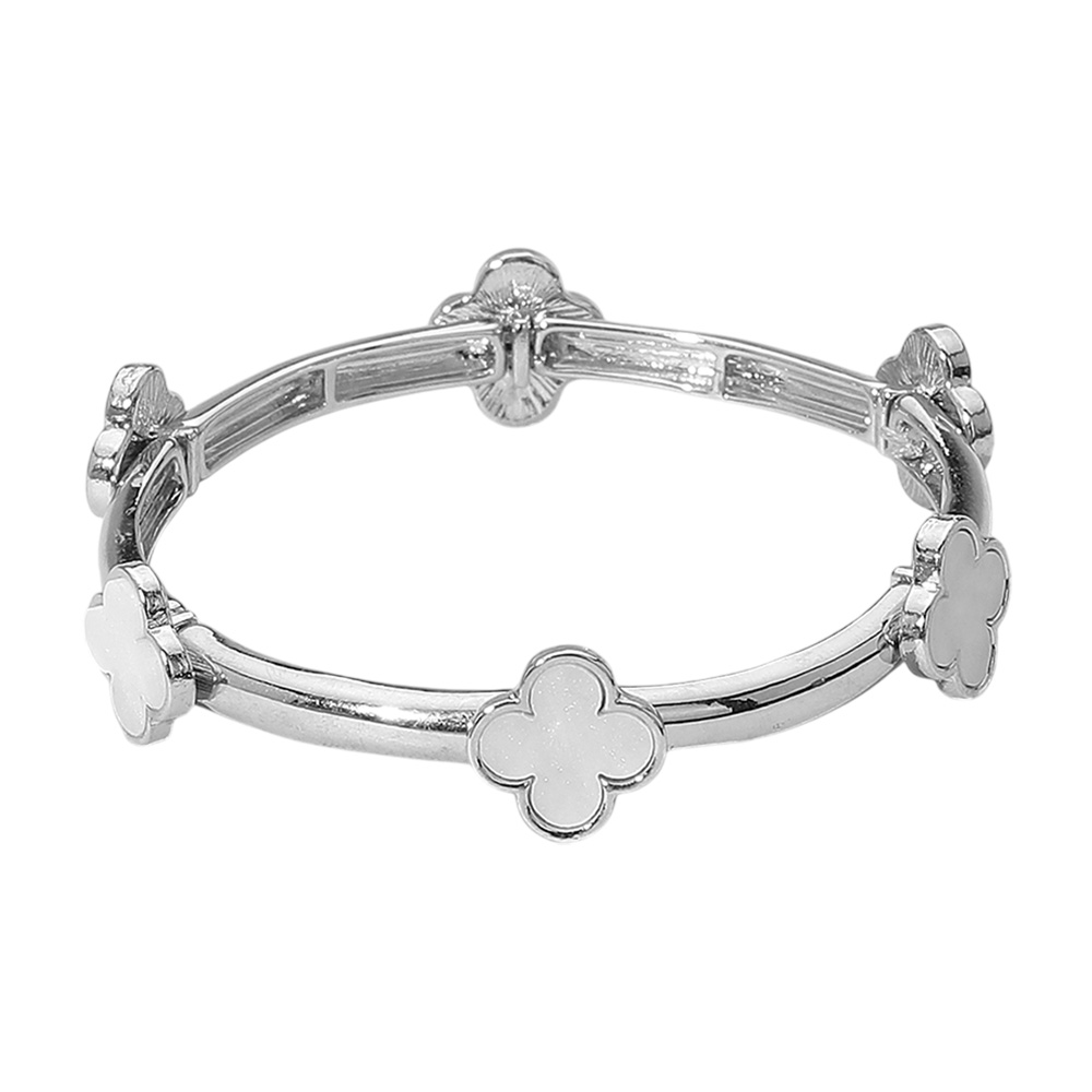 Mother Of Pearl Quatrefoil Metal Bar Stretch Bracelet