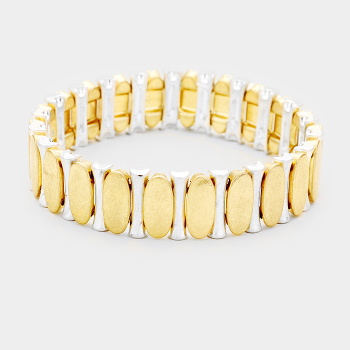4PCS - Semi Precious Stone Sand Dollar Bead Stretch Bracelets