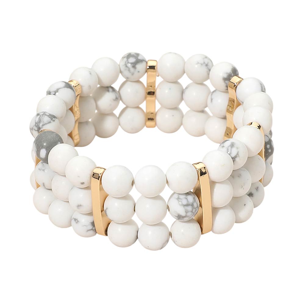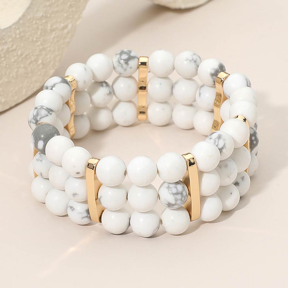• Stylish multi row stretch bracelet designed with round beads and sleek spacer accents for a balanced, layered look. Easy slip-on fit offers comfort and flexibility for everyday wear. A versatile accessory ideal for casual outfits, boutique collections, stacking styles, and giftable fashion jewelry displays.