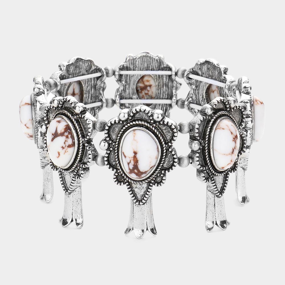 Natural Stone Accented Squash Blossom Stretch Bracelet