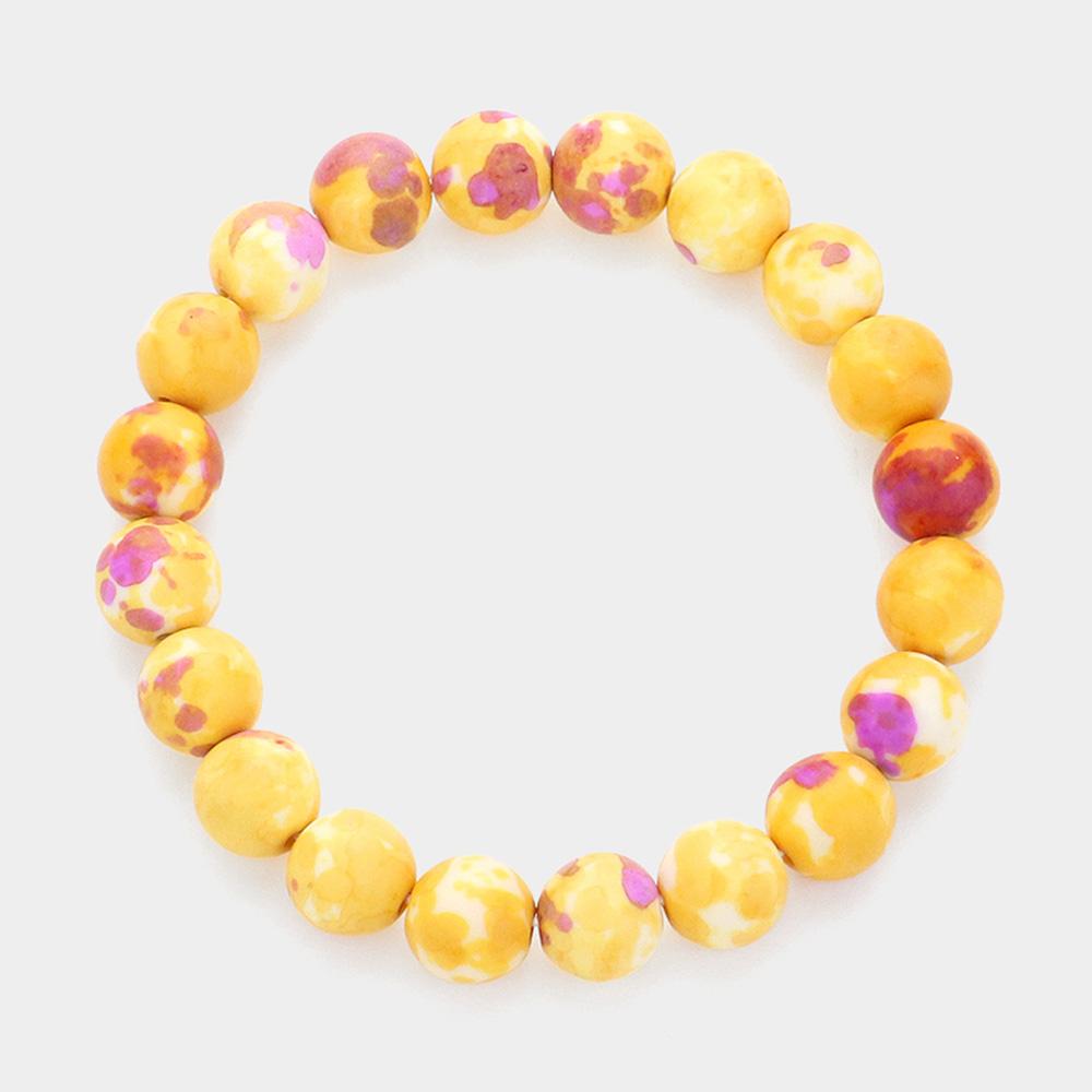 Chunky Marbled Resin Pebble Beaded Statement Necklace