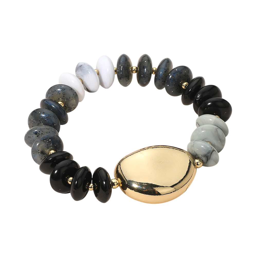 Polished Metal Accent Resin Pebble Beaded Stretch Bracelet Polished Metal Accent Resin Pebble Beaded Stretch Bracelet Polished Metal Accent Resin Pebble Beaded Stretch Bracelet