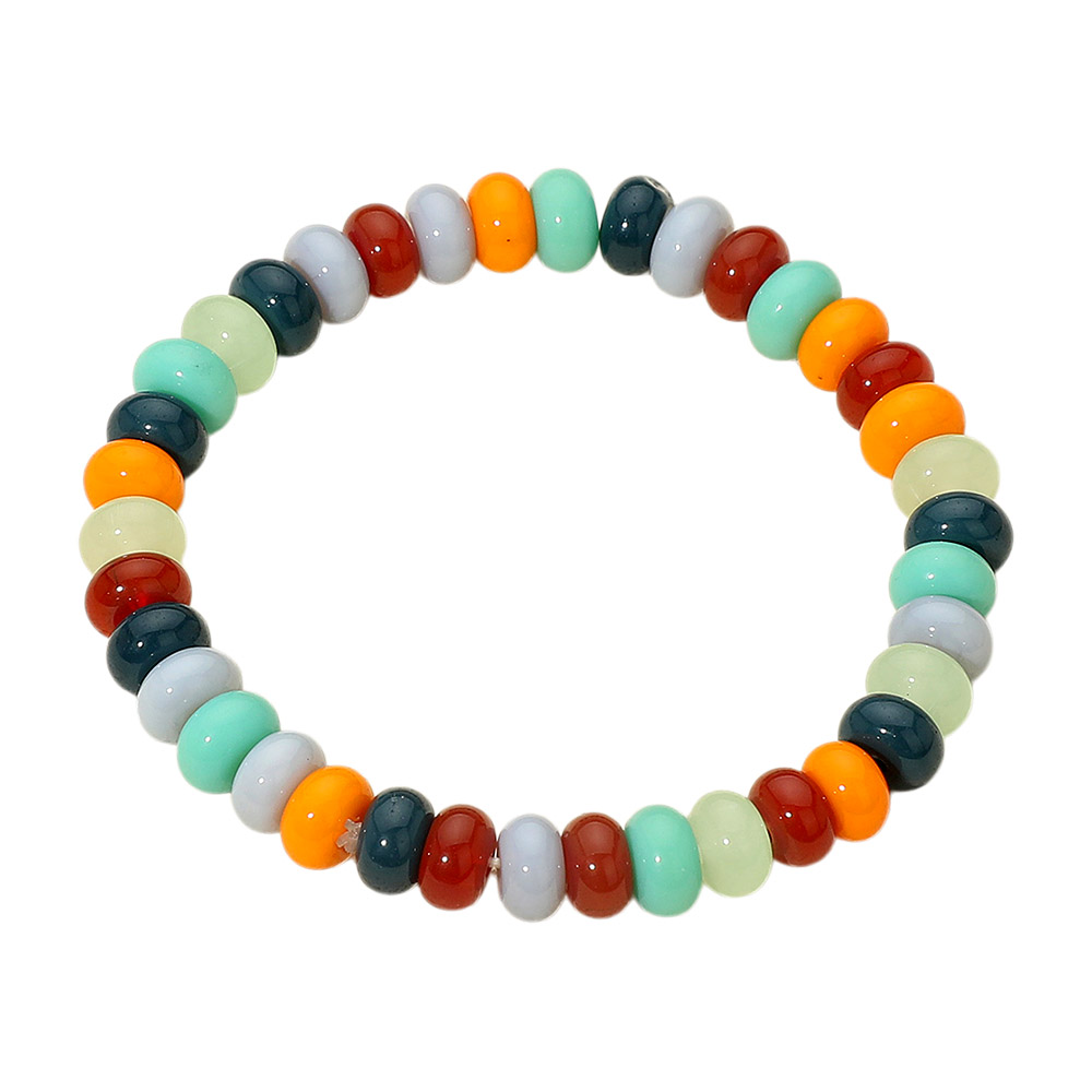 • Brighten up your look with this multicolor stretch bracelet featuring red, pink, white, and amber-toned beads. Lightweight, versatile, and easy to wear, it adds a playful pop of color to casual outfits or makes a fun stacking piece.
