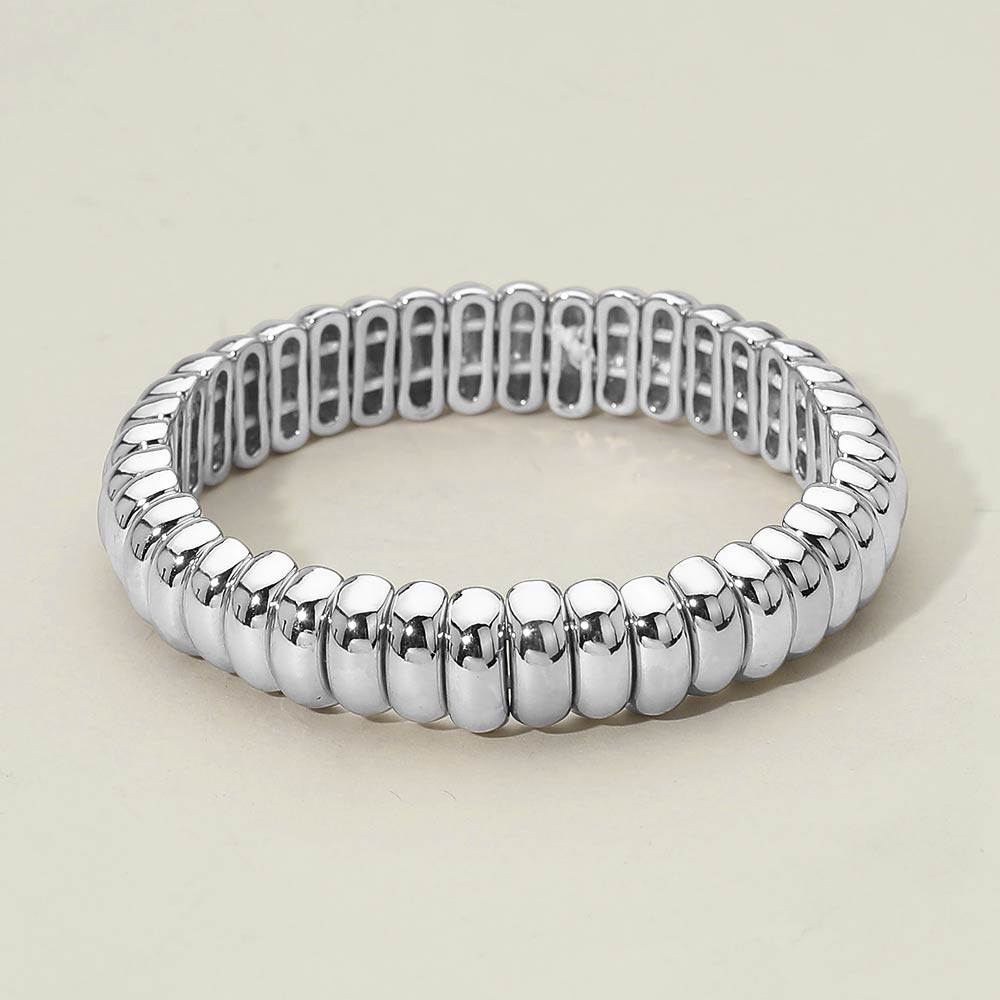 Rounded Metal Rib Link Stretch Bracelet Rounded Metal Rib Link Stretch Bracelet
