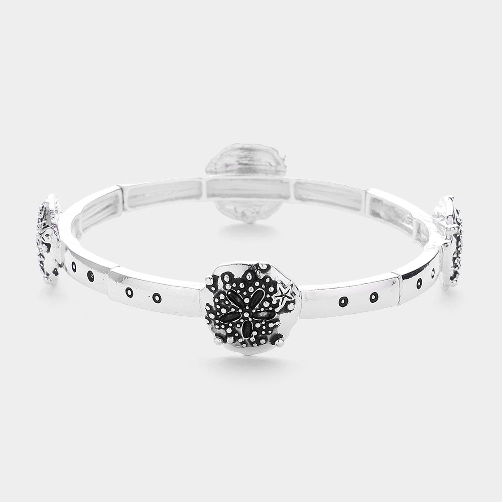 Abalone Pointed Metal Sand Dollar Stretch Bracelet