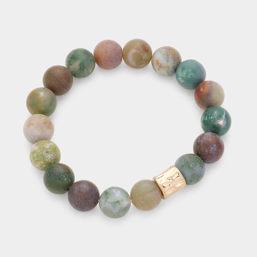 Bold Oval Gemstone Pendant Brushed Metal Chunky Chain Toggle Necklace
