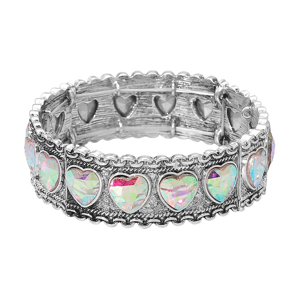 Details • Size : 0.75" H, 2.4" D • Stretchable • Elevate your accessories with this stretch bracelet featuring faceted heart details that catch the light beautifully. Designed with ornate edging and sparkling accents, it offers a comfortable fit and eye-catching style perfect for everyday wear or special occasions. • Lead and Nickel Compliant