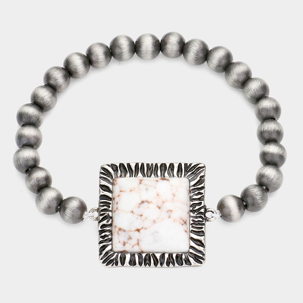 Natural Stone Rectangle Antique Metal Stud Earrings