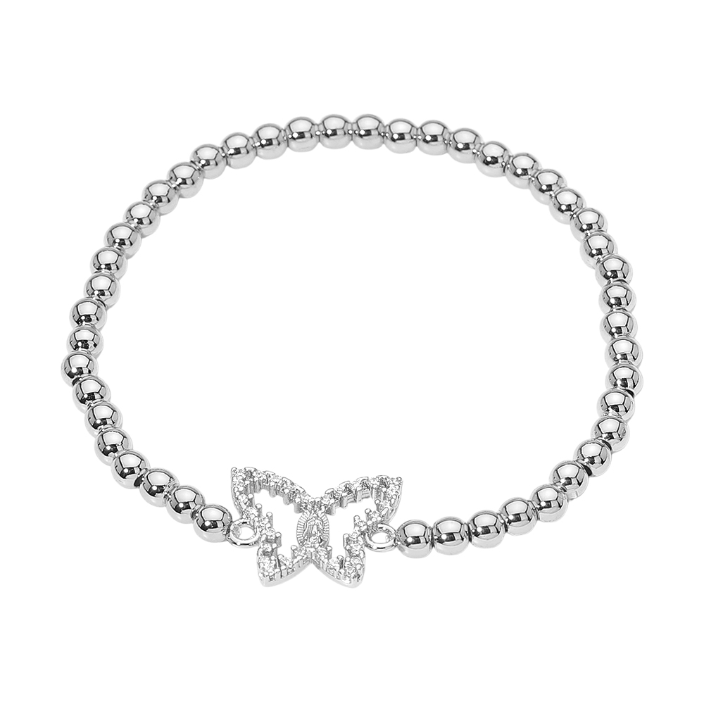 Stainless Steel CZ Stone Paved Butterfly Charm Beaded Stretch Bracelet