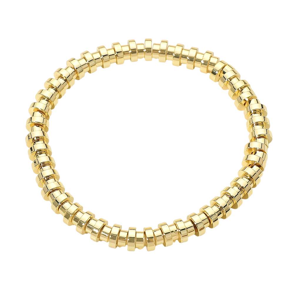 Stainless Steel Flat Disc Beaded Stretch Bracelet Stainless Steel Flat Disc Beaded Stretch Bracelet