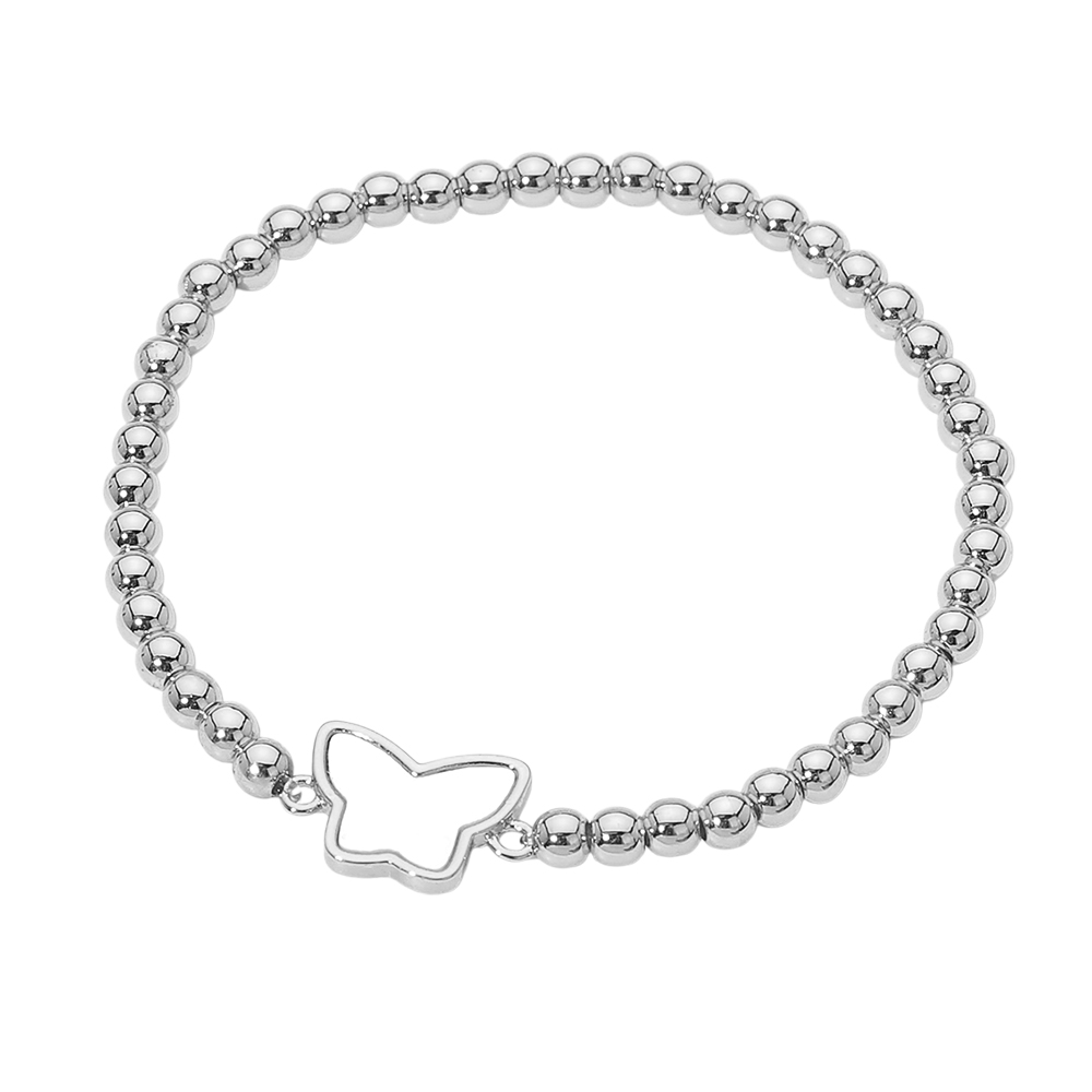 Details • Size : 0.4" H • Stretchable • This stretch bracelet features smooth rounded beads accented with a delicate butterfly charm for a graceful, symbolic look. Designed for easy slip-on wear and everyday comfort, it offers a balanced blend of charm and simplicity. Ideal for gifting, seasonal assortments, or daily styling, this bracelet layers effortlessly or stands beautifully on its own while adding a soft, whimsical touch to any accessory collection. • Stainless Steel