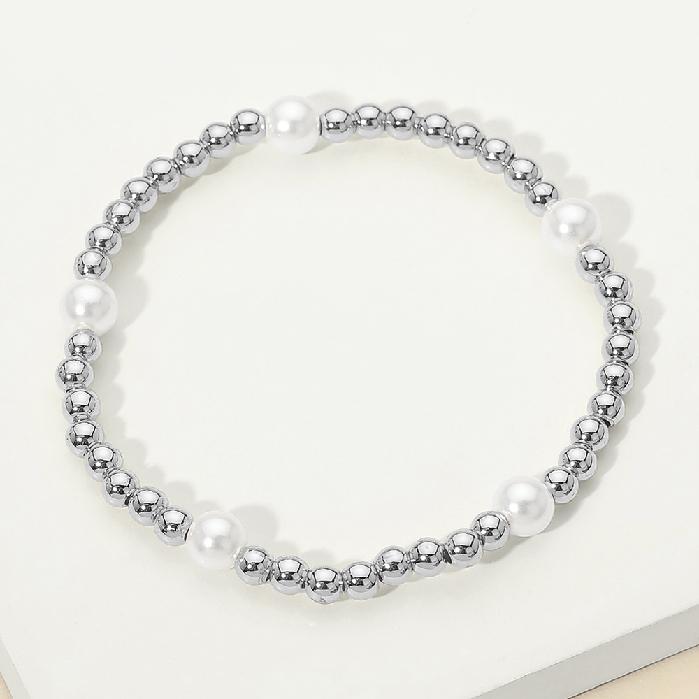 Details • Size : 0.25" H • Stretchable • This beaded stretch bracelet features a balanced design highlighted by smooth pearl accents for a refined, timeless look. Easy to wear and comfortable for daily styling, it layers effortlessly with other bracelets or stands out on its own. A versatile accessory suited for casual outfits, workwear, or special occasions, adding subtle elegance to any jewelry collection. • Stainless Steel