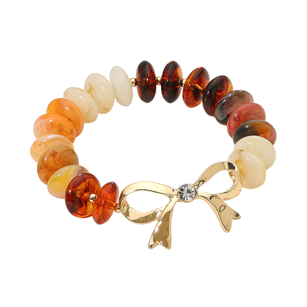 Stone Accent Metal Bow Accent Flat Resin Disc Beaded Stretch Bracelet