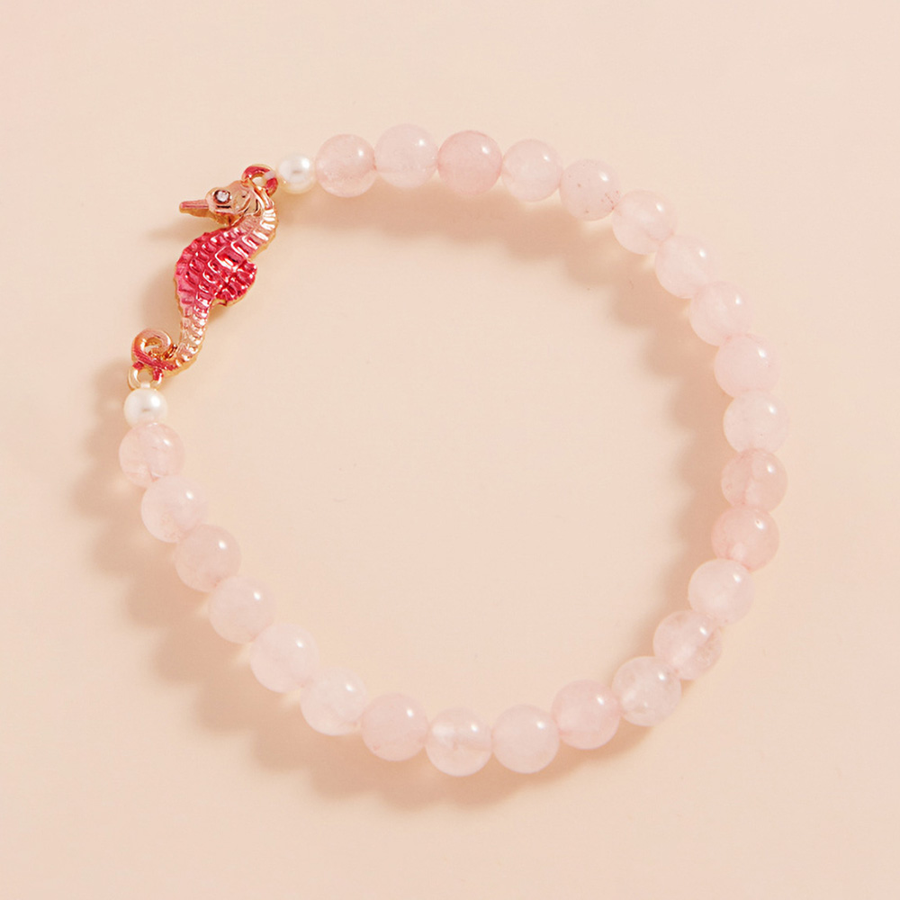 Stone Paved Colored Metal Seahorse Faceted Stretch Bracelet
