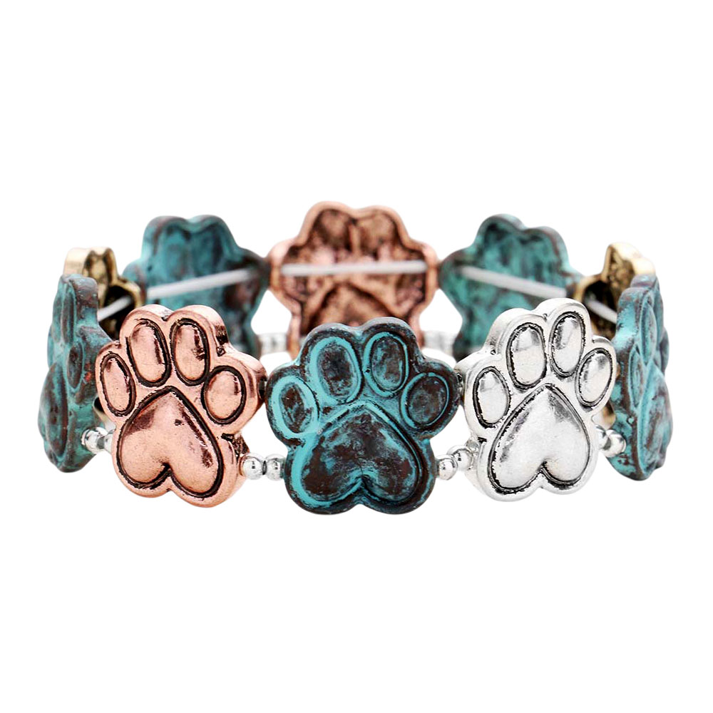 Antique Metal Paw Fur Mama Stretch Bracelet