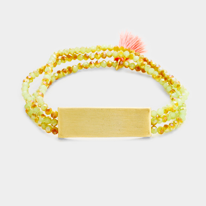 Triple Strand Rectangle Accented Tassel Stretch Bracelet