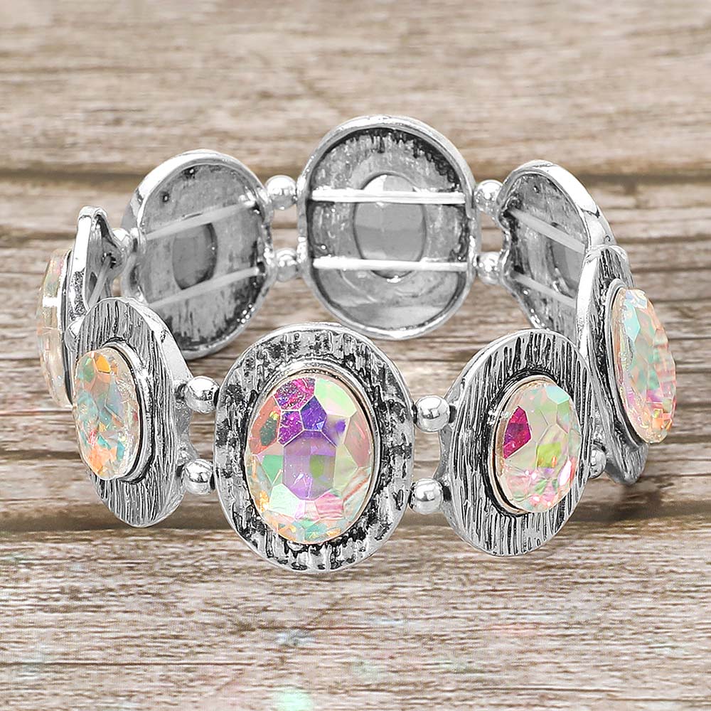 Rectangle Round Glass Stone Cluster Stretch Evening Bracelet