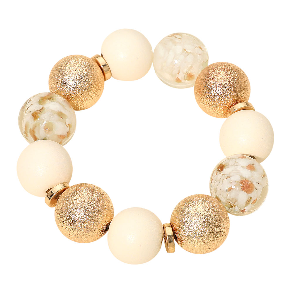 Wooden Textured Metal Resin Ball Beaded Stretch Bracelet