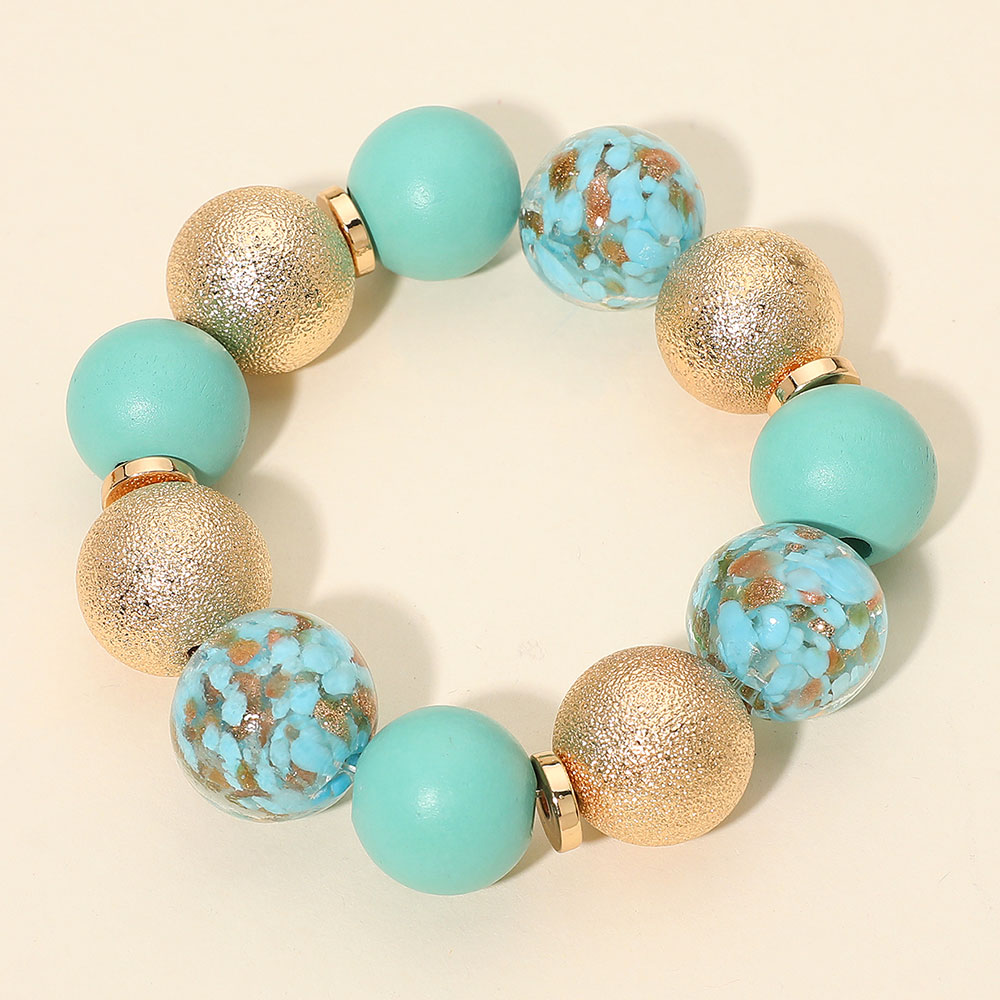 Wooden Textured Metal Resin Ball Beaded Stretch Bracelet
