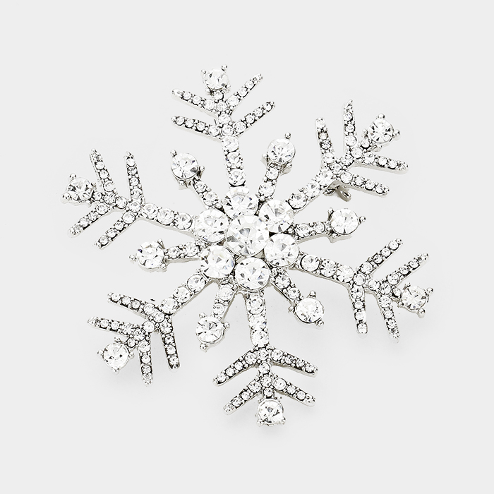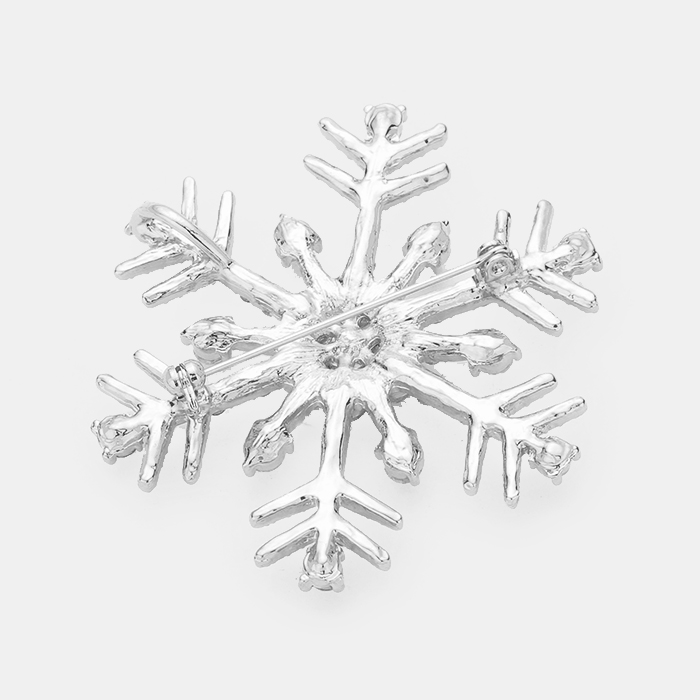 Details • Size : 2.25" X 2.25" • Pin Brooch • Elegant snowflake brooch with a finely detailed symmetrical design that delivers eye-catching sparkle and festive charm. Ideal for enhancing coats, scarves, hats, or gift wrapping accents, offering a stylish seasonal highlight that complements holiday outfits and special occasion looks. • Lead and Nickel Compliant
