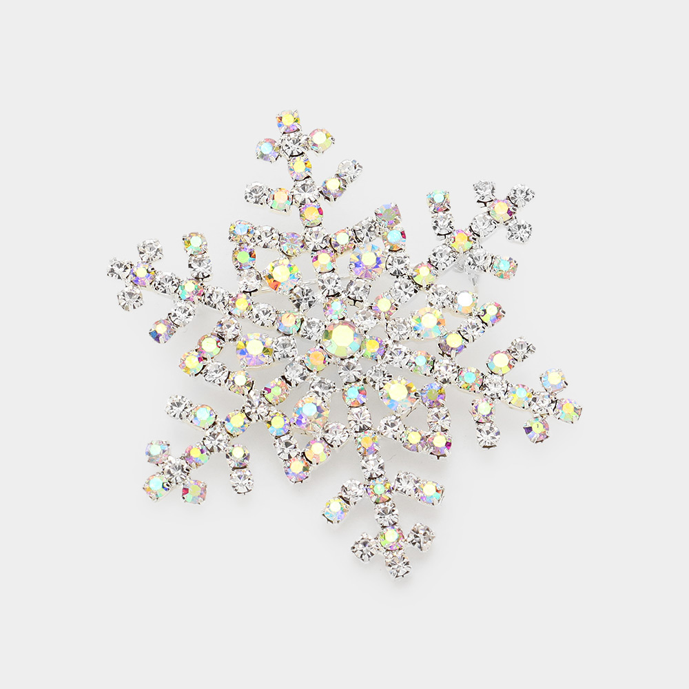 Details • Size : 2" X 2" • Pin Brooch • Elegant snowflake brooch featuring precision-set faceted accents in a radiant, symmetrical design. A refined accessory for jackets, scarves, hats, or evening wear, adding seasonal charm and subtle sparkle while remaining lightweight, versatile, and easy to style for festive or everyday looks.