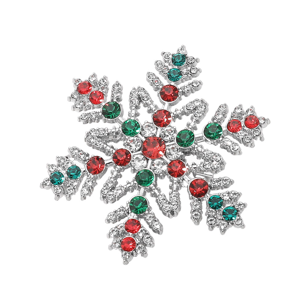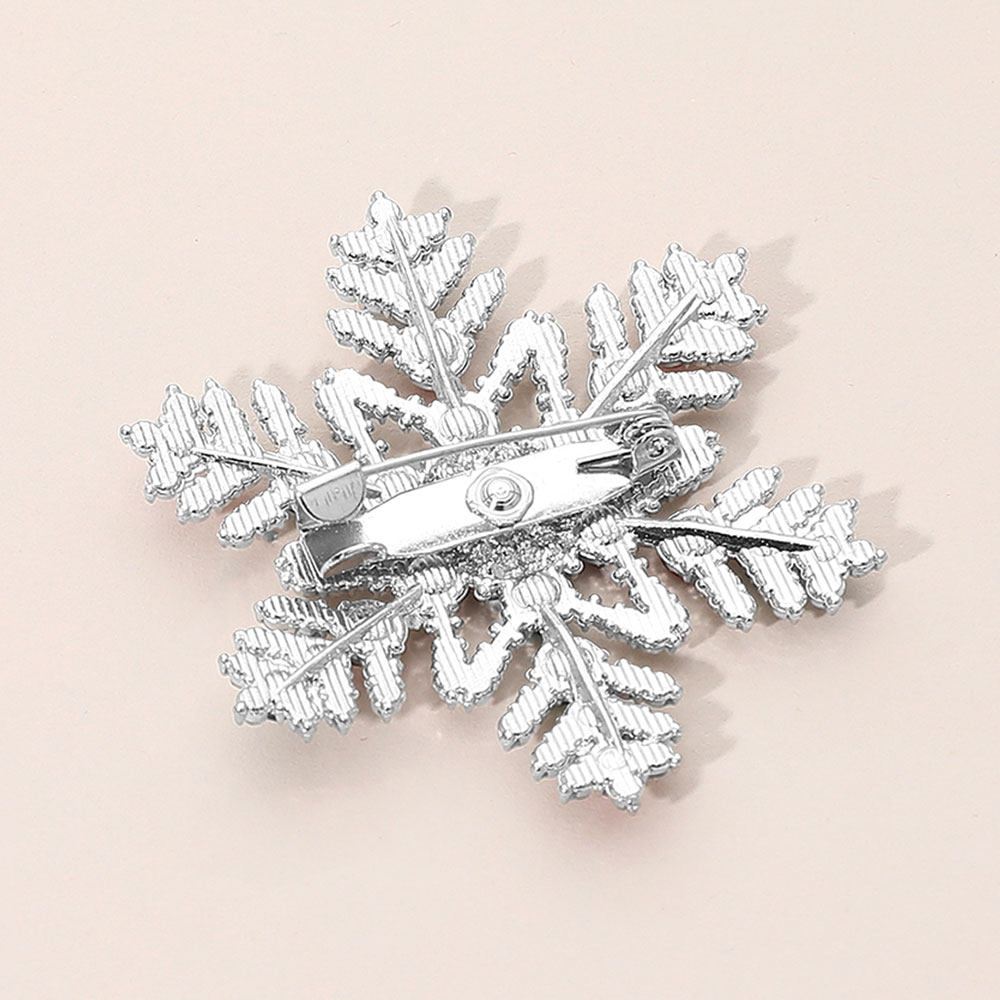 Details • Size : 2" X 1.75" • Pin Brooch • Detailed snowflake brooch with precisely arranged faceted accents forming a bold seasonal motif. Designed for easy styling on coats, scarves, hats, or bags, it offers eye-catching sparkle with lightweight comfort and a secure fit, perfect for holiday events, winter outfits, or thoughtful gifting. • Lead and Nickel Compliant