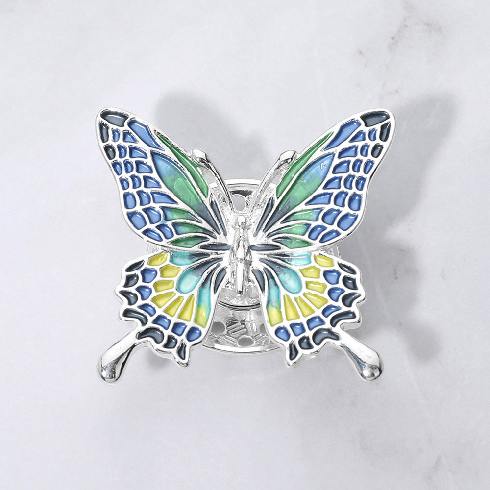 Details • Size : 2" X 2" • Magnetic Closure • No Pinhole Damage • Charming butterfly magnetic brooch featuring intricate wing patterns and a polished finish. Perfect for elevating any outfit, this detachable pin adds a graceful accent to blazers, scarves, or handbags, blending elegance and sophistication with a touch of artistic flair. • Lead and Nickel Compliant