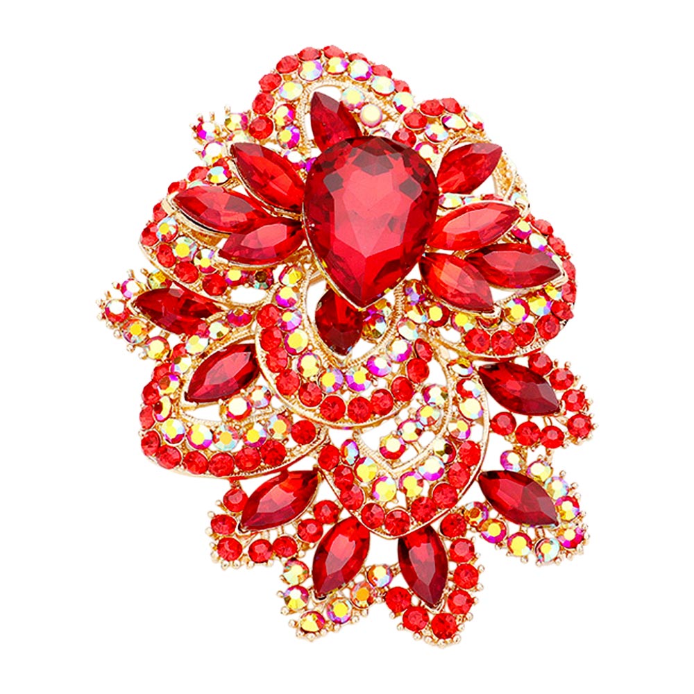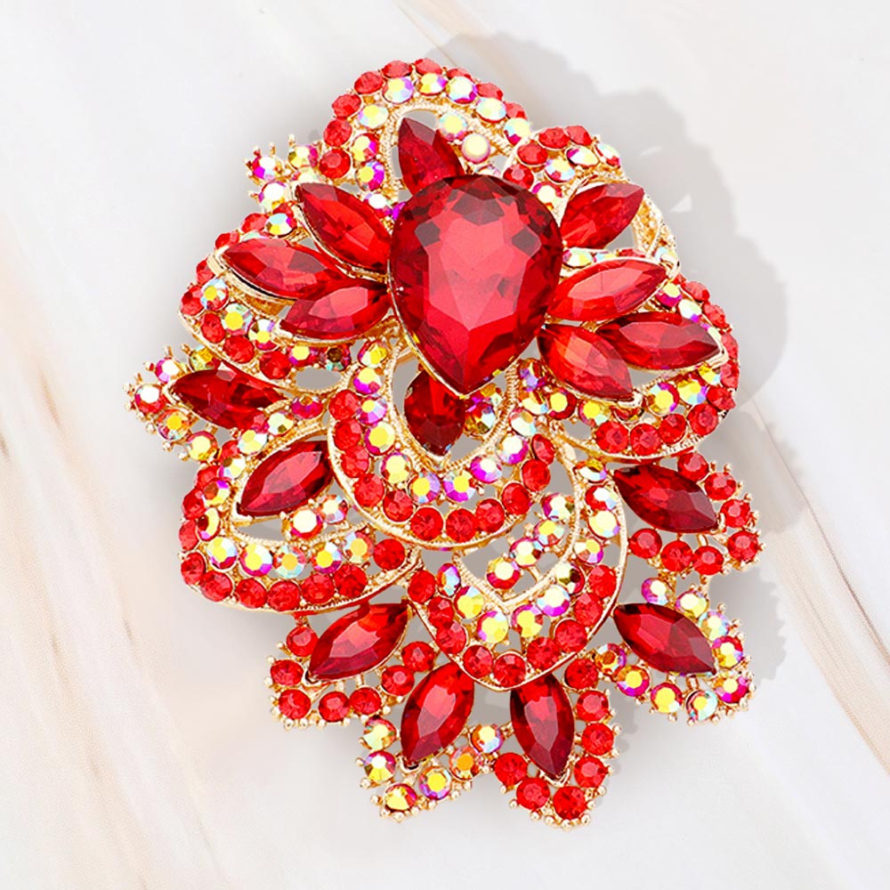 • This statement brooch showcases a striking teardrop centerpiece surrounded by layered sparkling accents that create a dramatic, light-reflecting finish. Designed to elevate any outfit, it adds an elegant touch ideal for formal events, special occasions, or standout everyday styling.