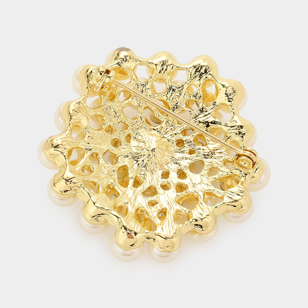 Rhinestone Embellished Metal Flower Beaded Open Circle Earrings