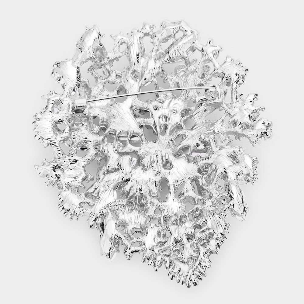 Round Stone Pointed Bling Studded Flower Pendant Long Necklace