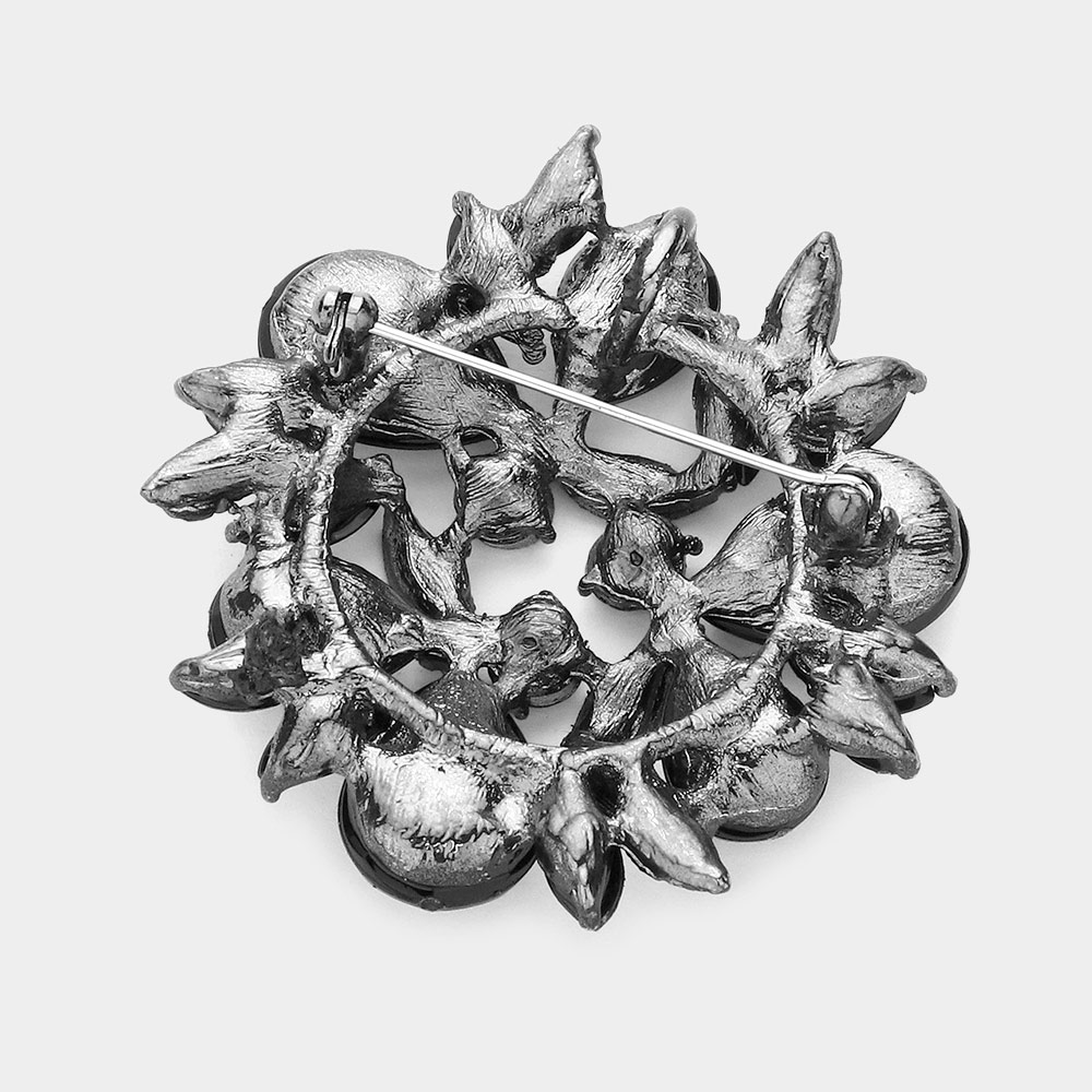 Glass Crystal Teardrop Wreath Pin Brooch