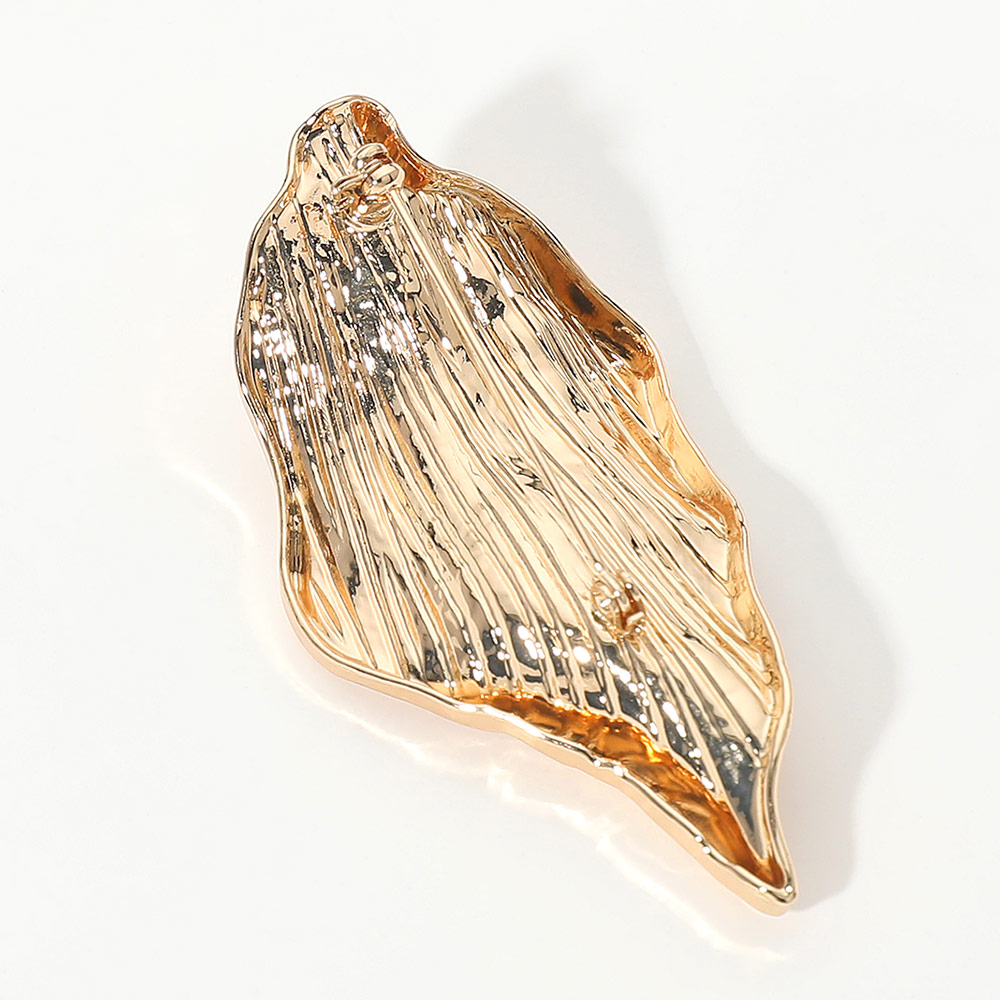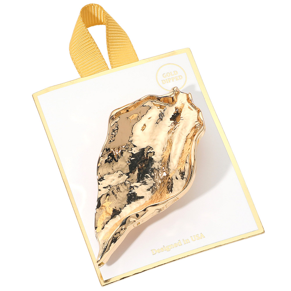 Details • Size : 1.25" X 2.75" • Pin Brooch • Bold sculpted brooch inspired by organic leaf forms, featuring a fluid, textured silhouette that adds artistic sophistication. Perfect for jackets, scarves, dresses or bags, offering an elegant statement accent ideal for special events or elevated everyday style. • Gold Dipped • Lead and Nickel Compliant