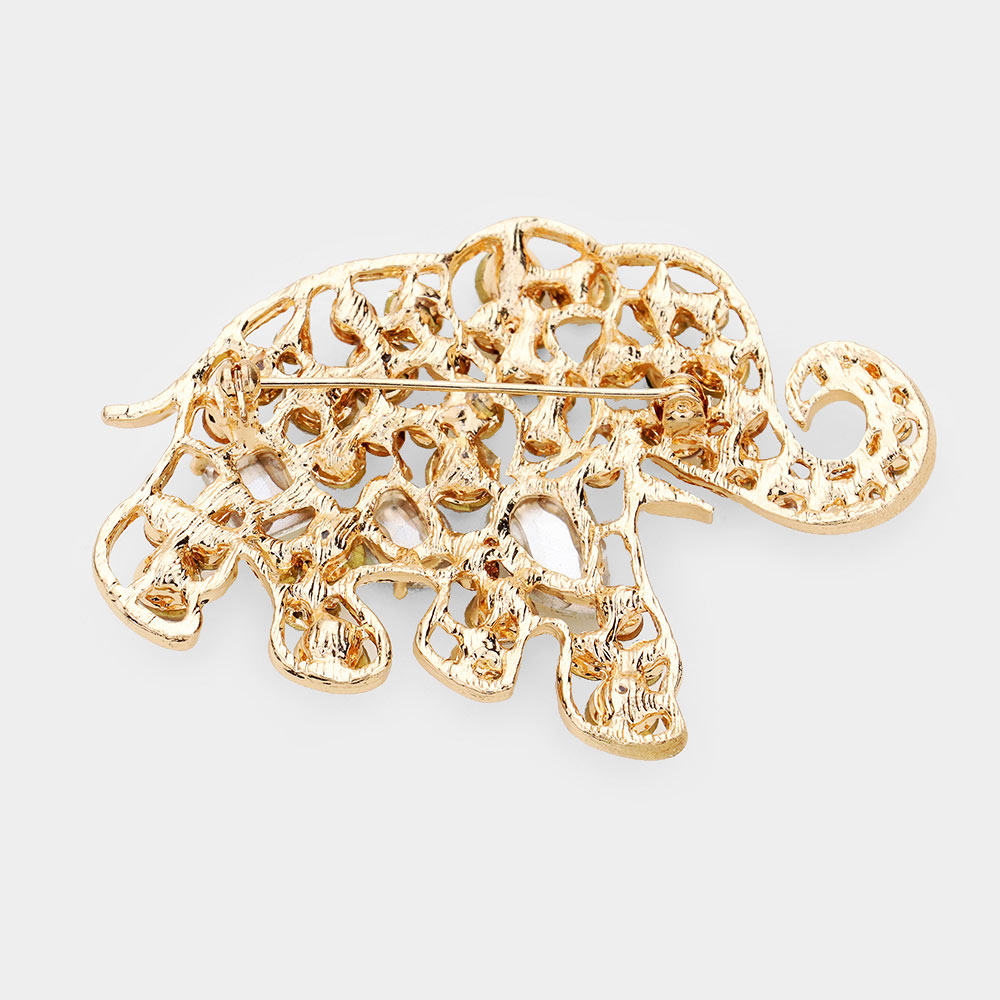 Details • Size : 2.75" X 1.75" • Pin Brooch • Bring charm and elegance to your look with this jeweled elephant brooch, adorned with sparkling stones for a radiant finish. Perfect as a statement accessory, it adds a playful yet sophisticated touch to jackets, dresses, scarves, or bags. A versatile animal pin ideal for gifting or personal style. • Lead and Nickel Compliant