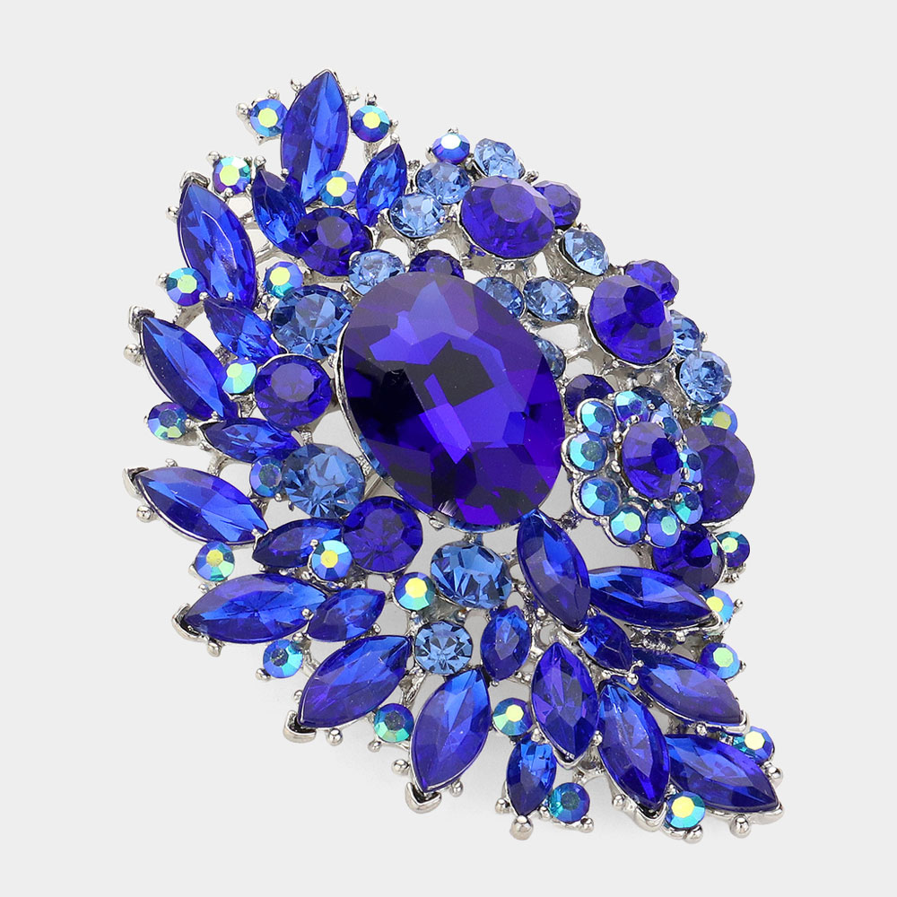 Oval Glass Stone Accented Marquise Stone Cluster Pin Brooch