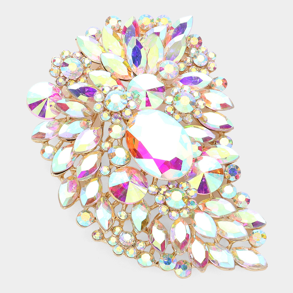Details • Size : 3" X 4" • Pin Brooch • Eye-catching statement brooch featuring a clustered gemstone design that adds instant glamour to any outfit. Perfect for special occasions or elevating everyday style, this radiant accessory brings a touch of elegance and sparkle to your look. • Lead and Nickel Compliant