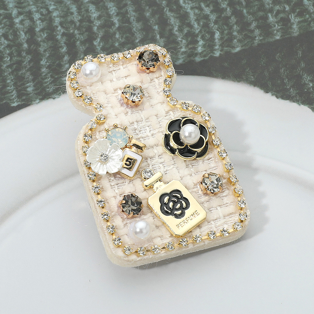 Pearl Flower Embellished Tweed Perfume Bottle Pin Brooch Hair Clip