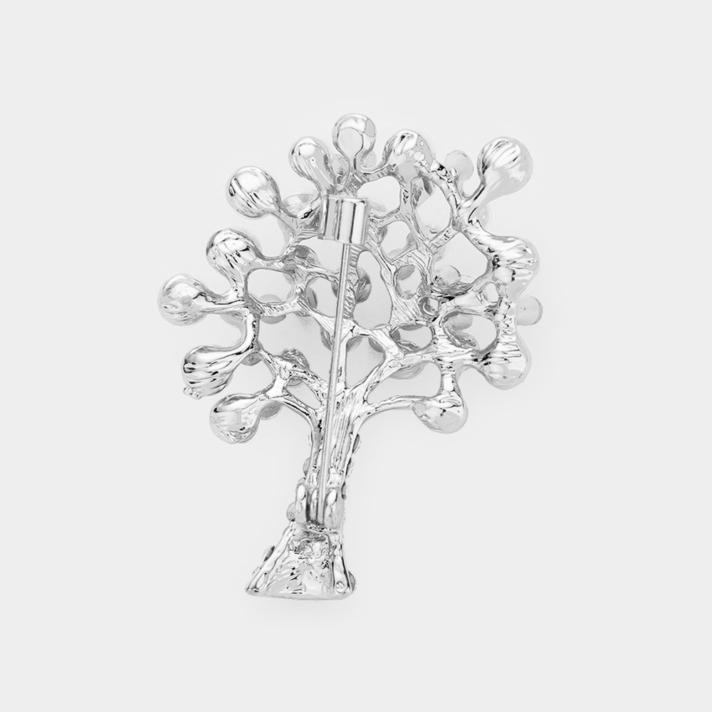 Pearl Rhinestone Pave Tree Pin Brooch