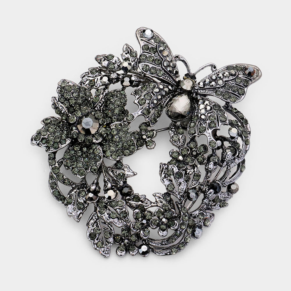 Rhinestone Butterfly Flower Leaf Pin Brooch / Pendant