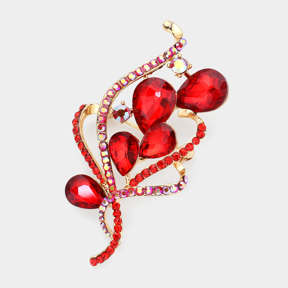 Rhinestone Pave Glass Stone Embellished Brooch