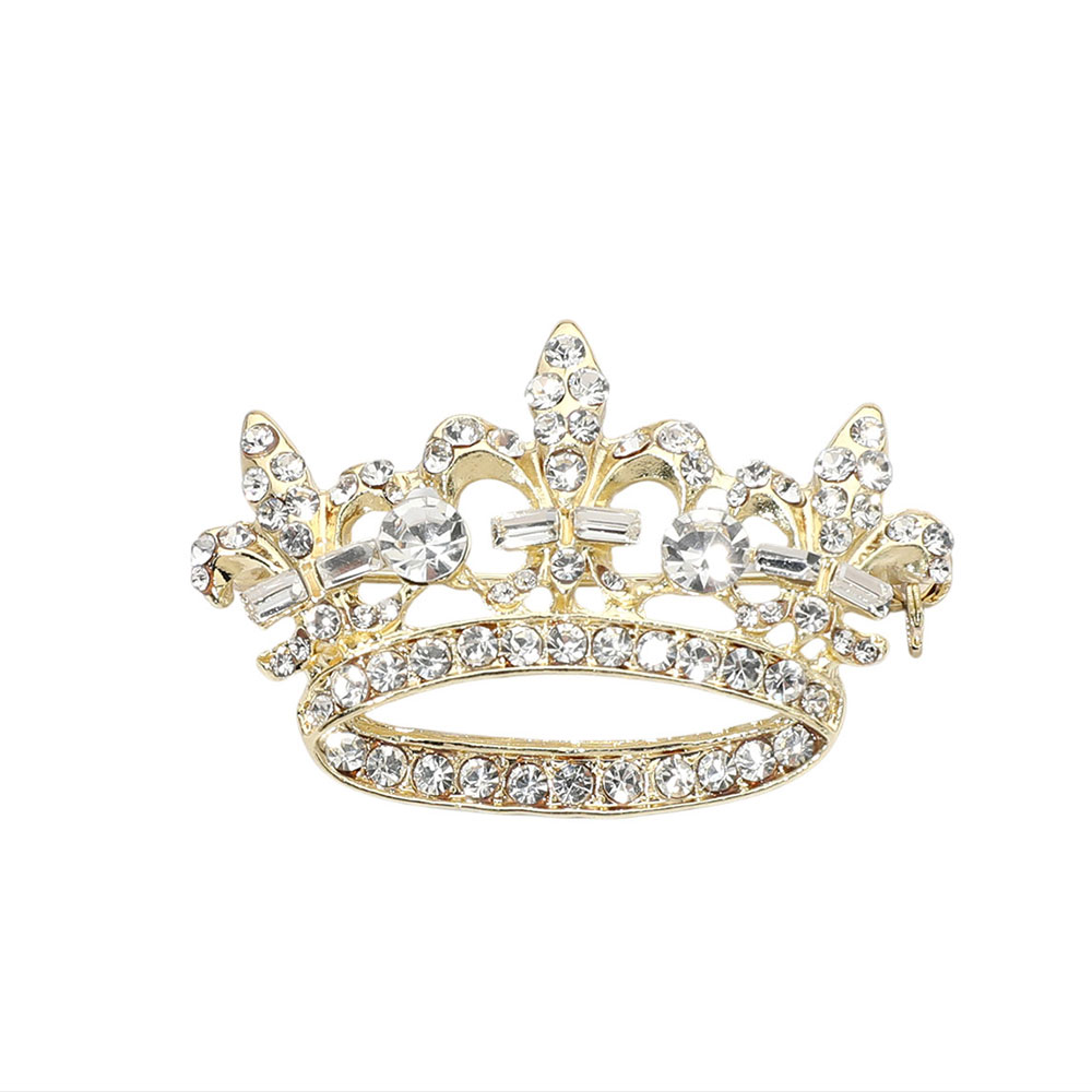 • Elegant crown shaped brooch pin designed with refined detailing and shimmering crystal accents for a regal statement look. Perfect for styling dresses, blazers, scarves, or accessories, this eye catching piece adds a touch of sophistication and boutique ready appeal to any outfit.