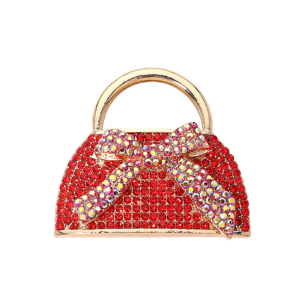 Rhinestone Studded Bow Accent Mini Handbag Pin Brooch