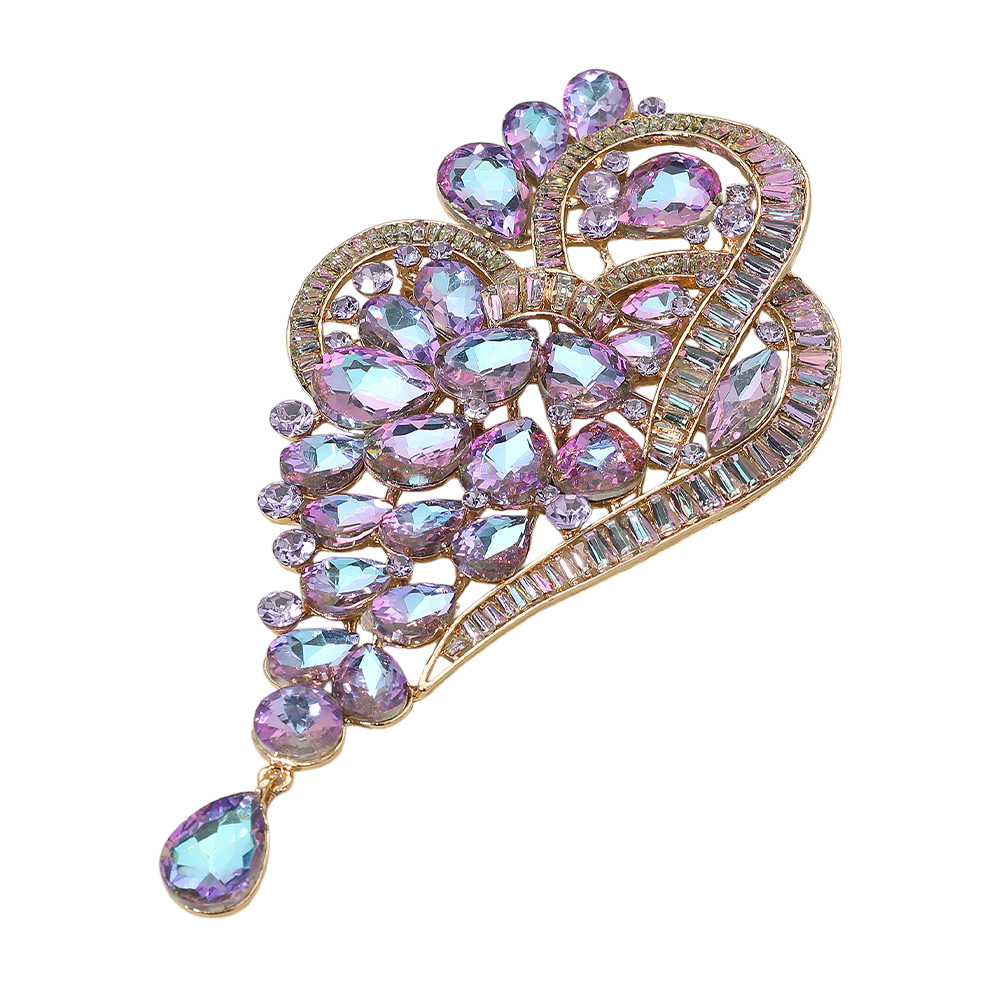 Details • Size : 3.25" X 6" • Pin Brooch • Add a glamorous touch to your outfits with this elegant rhinestone brooch pin featuring sparkling teardrop gemstones in a clustered swirl design. Perfect for accessorizing dresses, coats, scarves, or bags, this brooch adds shimmer and sophistication, making it ideal for special occasions and gifts. • Lead and Nickel Compliant
