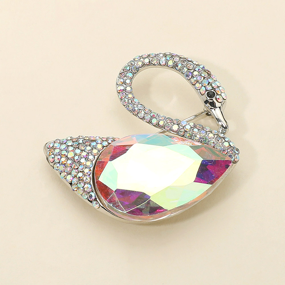 • Add a touch of sophistication with this elegant swan brooch featuring sparkling crystal accents and a radiant gemstone centerpiece. Perfect for enhancing formal attire, evening wear, or as a thoughtful gift, it blends timeless charm with eye-catching brilliance.