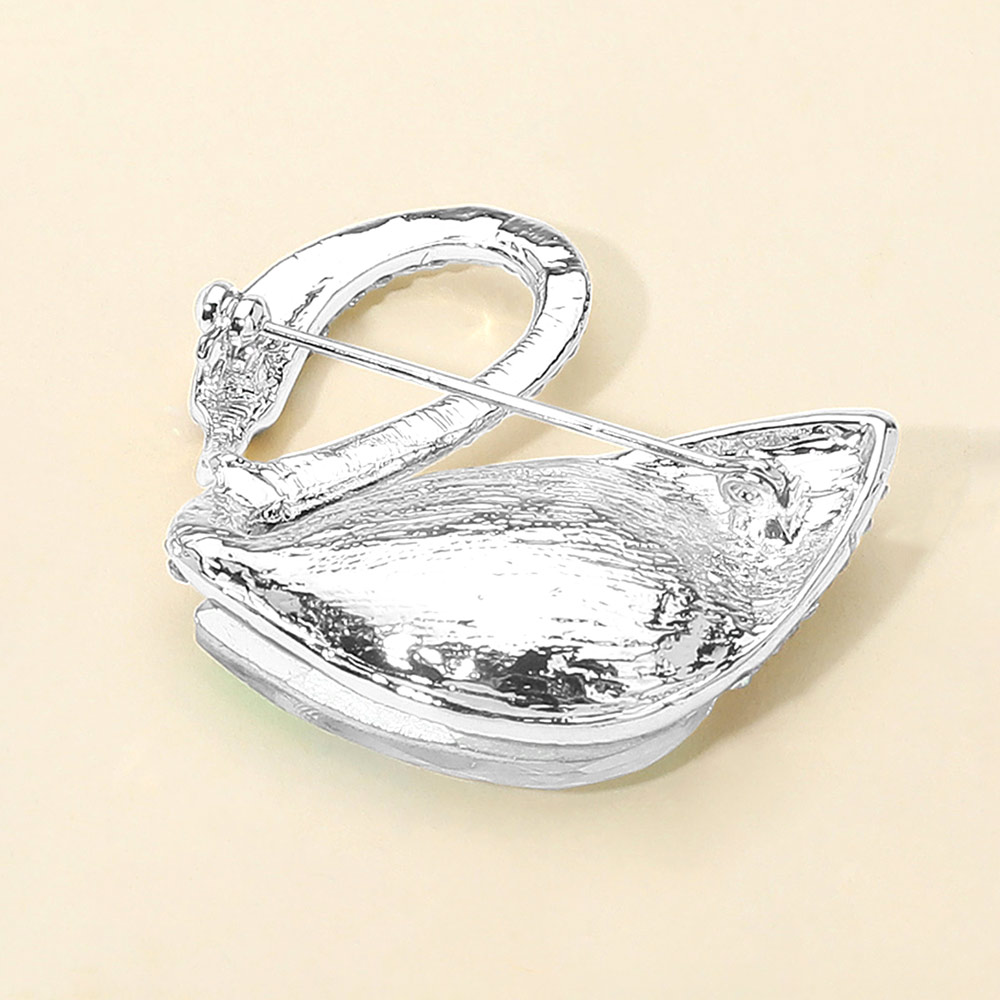 Teardrop Stone Accented Swan Brooch